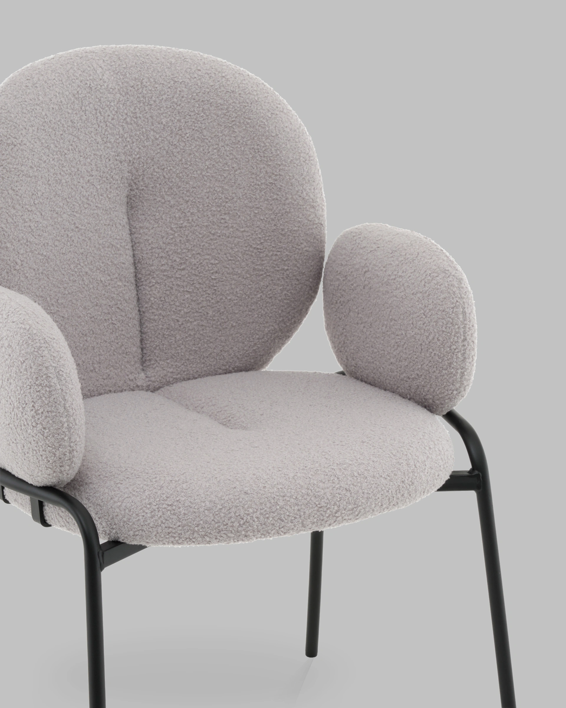 Современный комфорт с акцентом на тактильностьМоллек — это современный стул в лаконичном дизайне, выполненный в стиле минимализм. Мягкая трендовая обивка из ткани букле в светло-сером оттенке и плавные округлые формы спинки, сиденья и подлокотников создают ощущение уюта и изящности. Модель особенно актуальна для тех, кто ценит не только эстетику, но и комфорт в повседневном использовании.