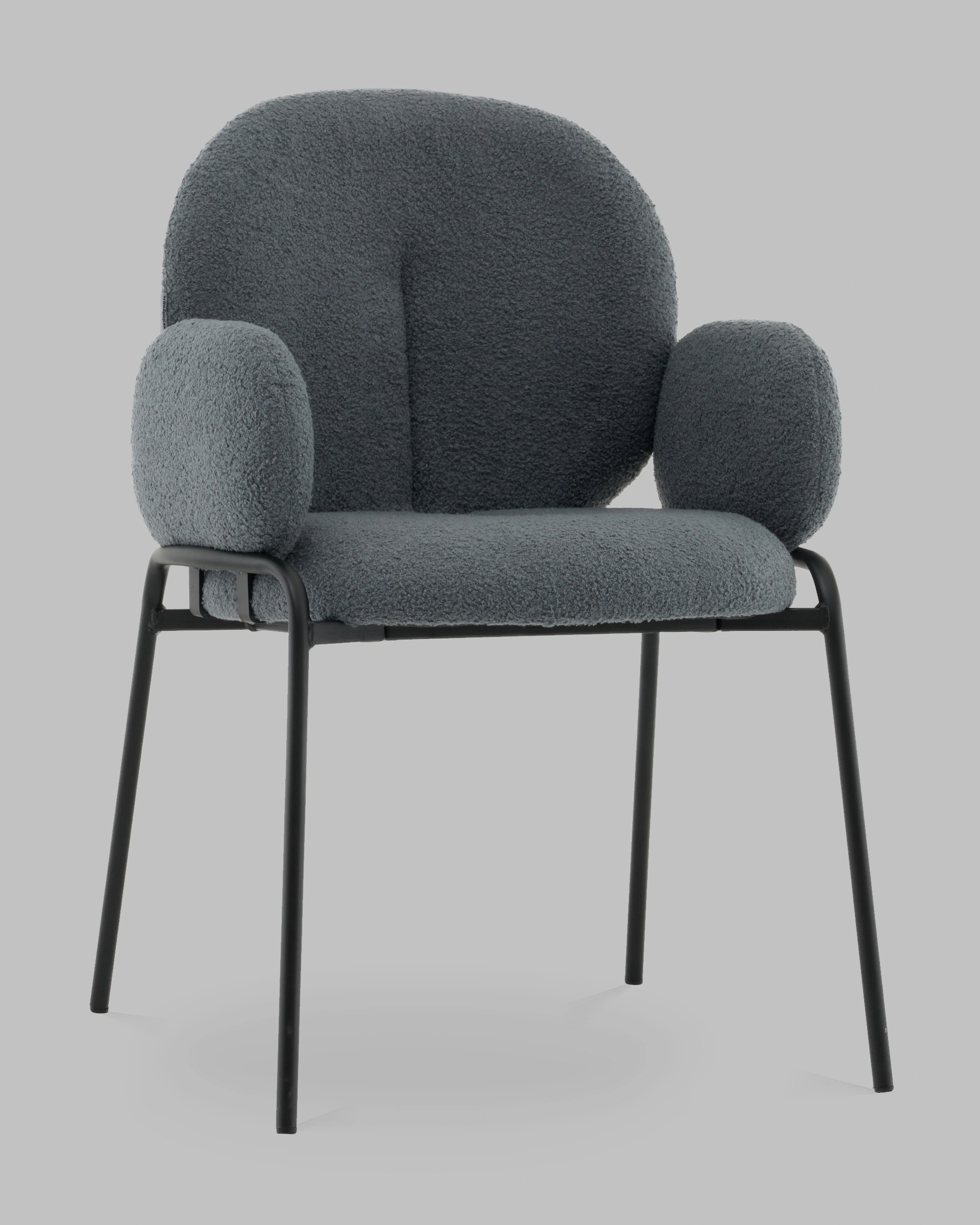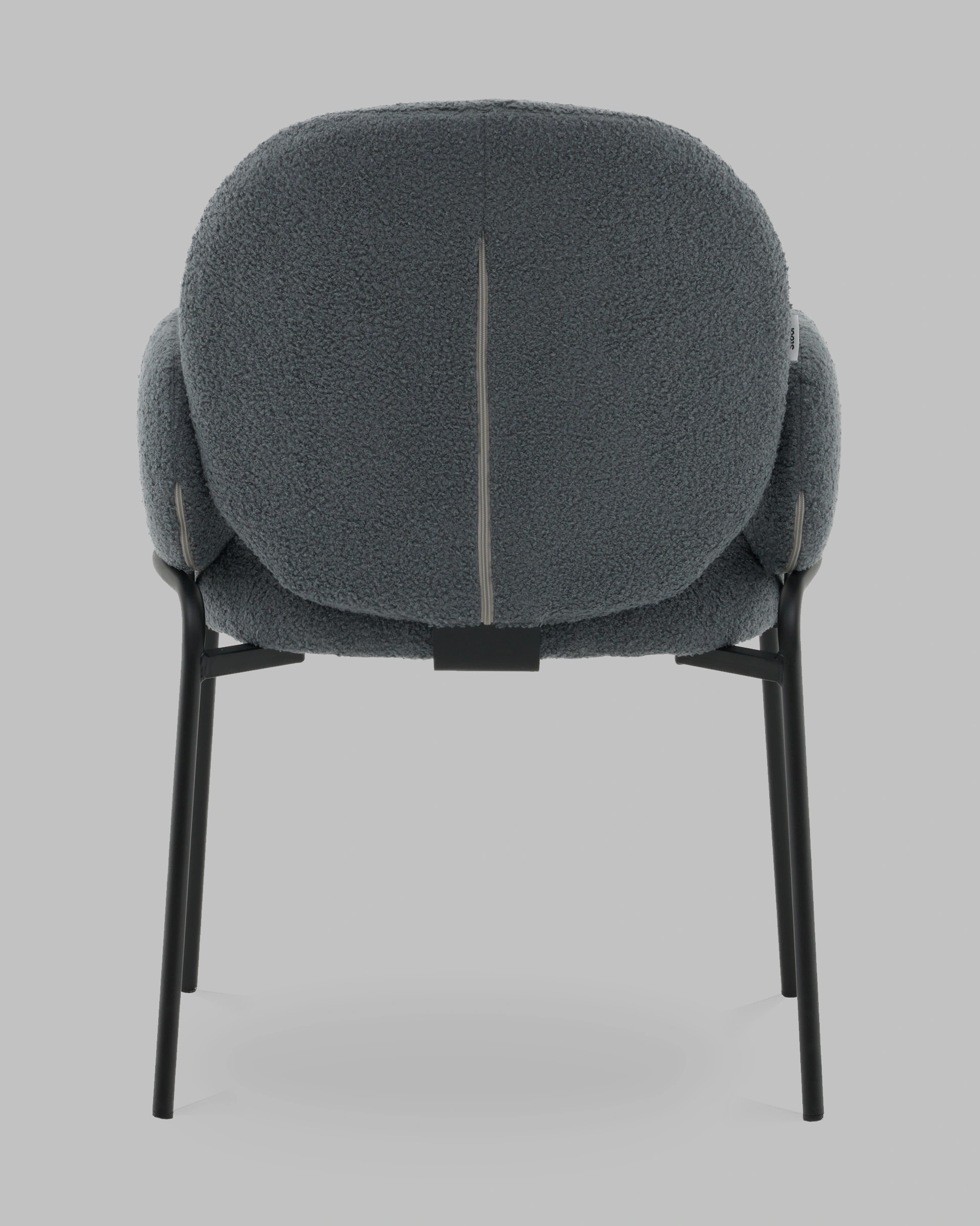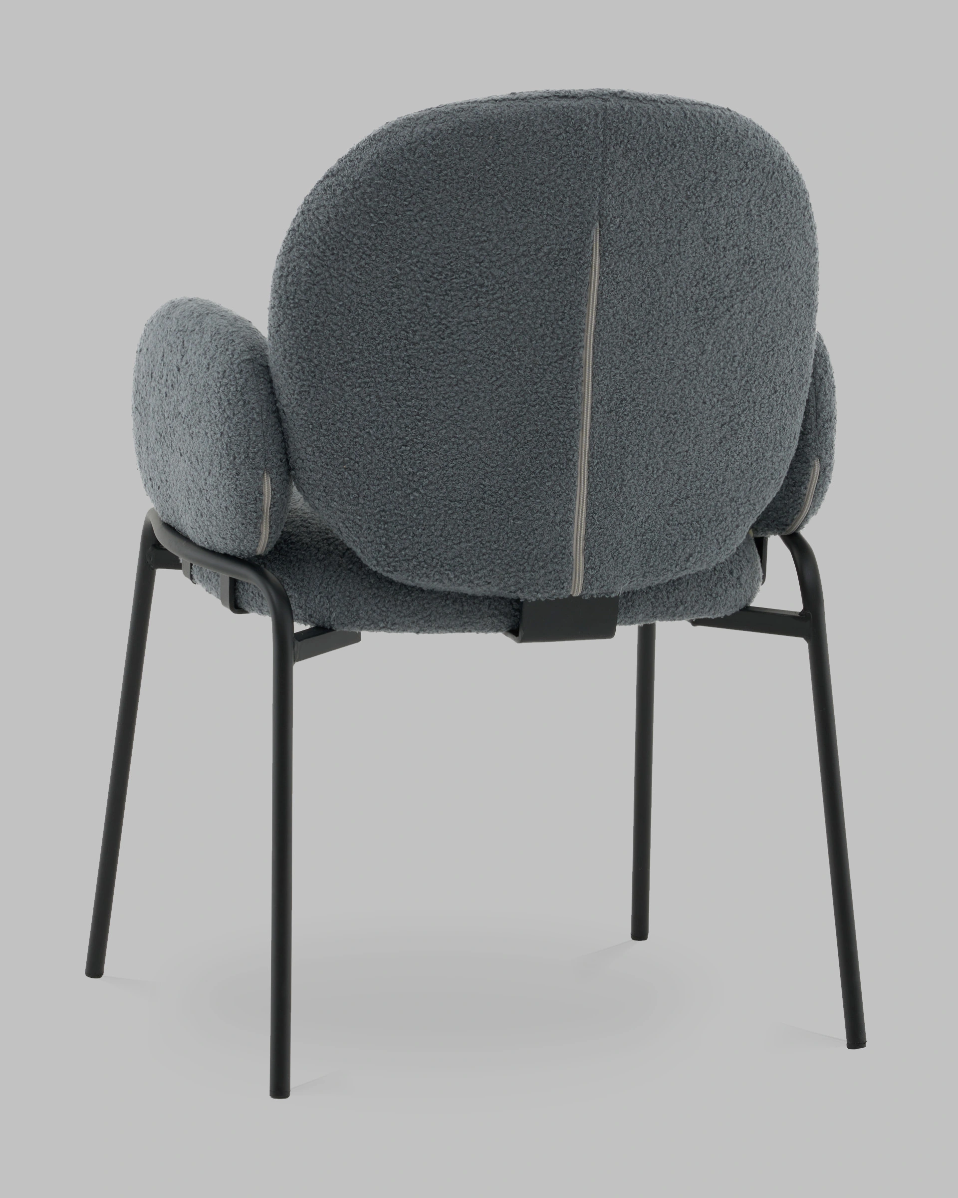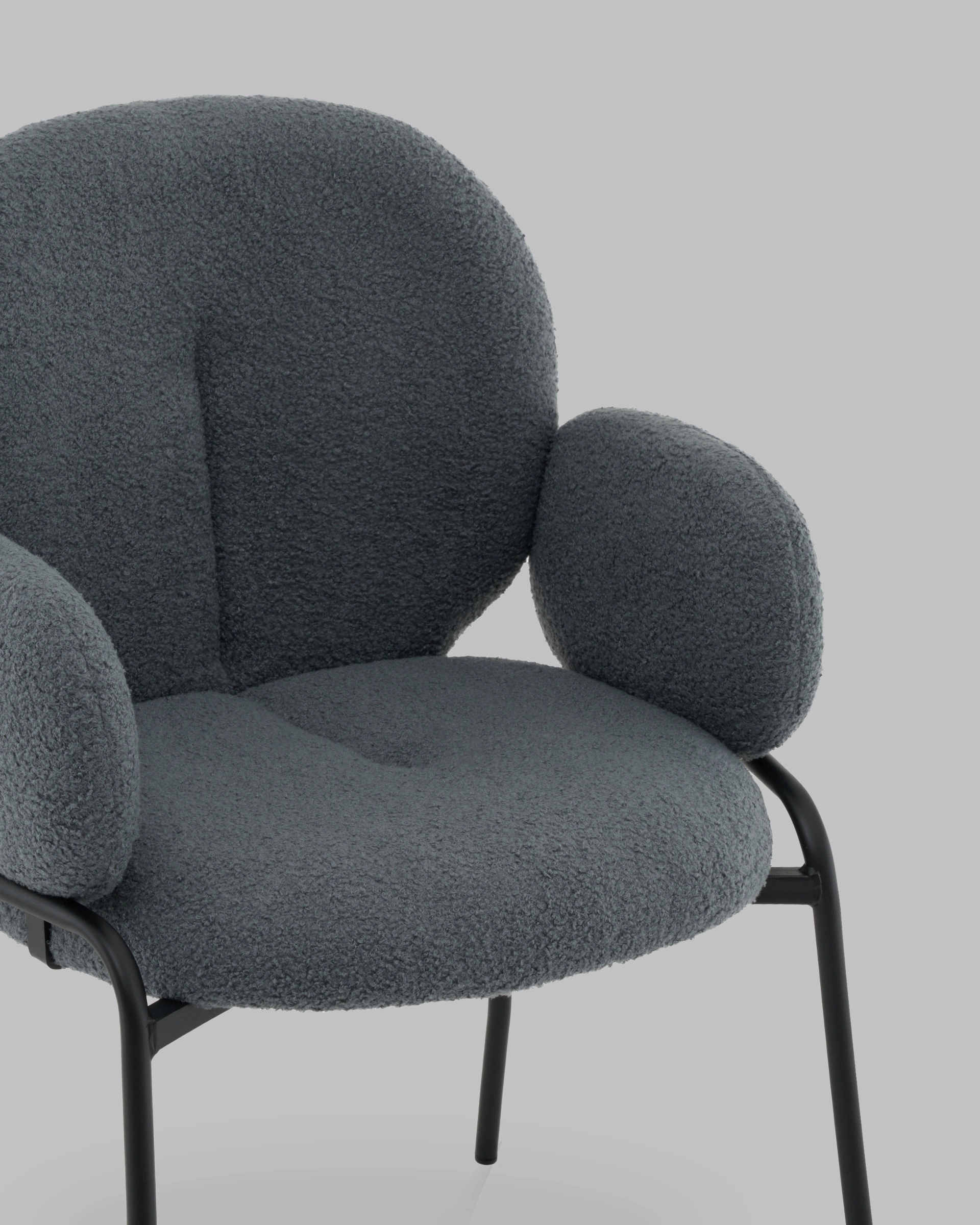 Современный комфорт с акцентом на тактильностьМоллек — это современный стул в лаконичном дизайне, выполненный в стиле минимализм. Мягкая трендовая обивка из ткани букле в тёмно-сером оттенке и плавные округлые формы спинки, сиденья и подлокотников создают ощущение уюта и изящности. Модель особенно актуальна для тех, кто ценит не только эстетику, но и комфорт в повседневном использовании.