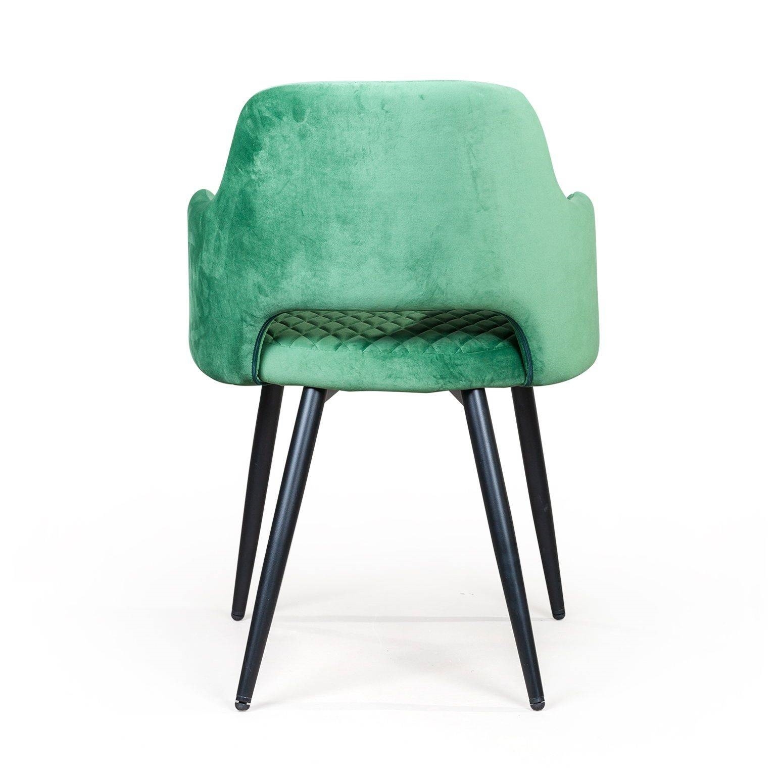 Плавные линии, изящные ножки, просторное сиденье и высокие подлокотники делают модель невероятно удобной для отдыха. Оригинальная прорезь у основания спинки добавляет конструкции легкости и воздушности. Стильная отделка ромбом на спинке и сиденье в сочетании с благородным бархатом создает неповторимые переливы и придает стулу особую утонченность.
