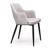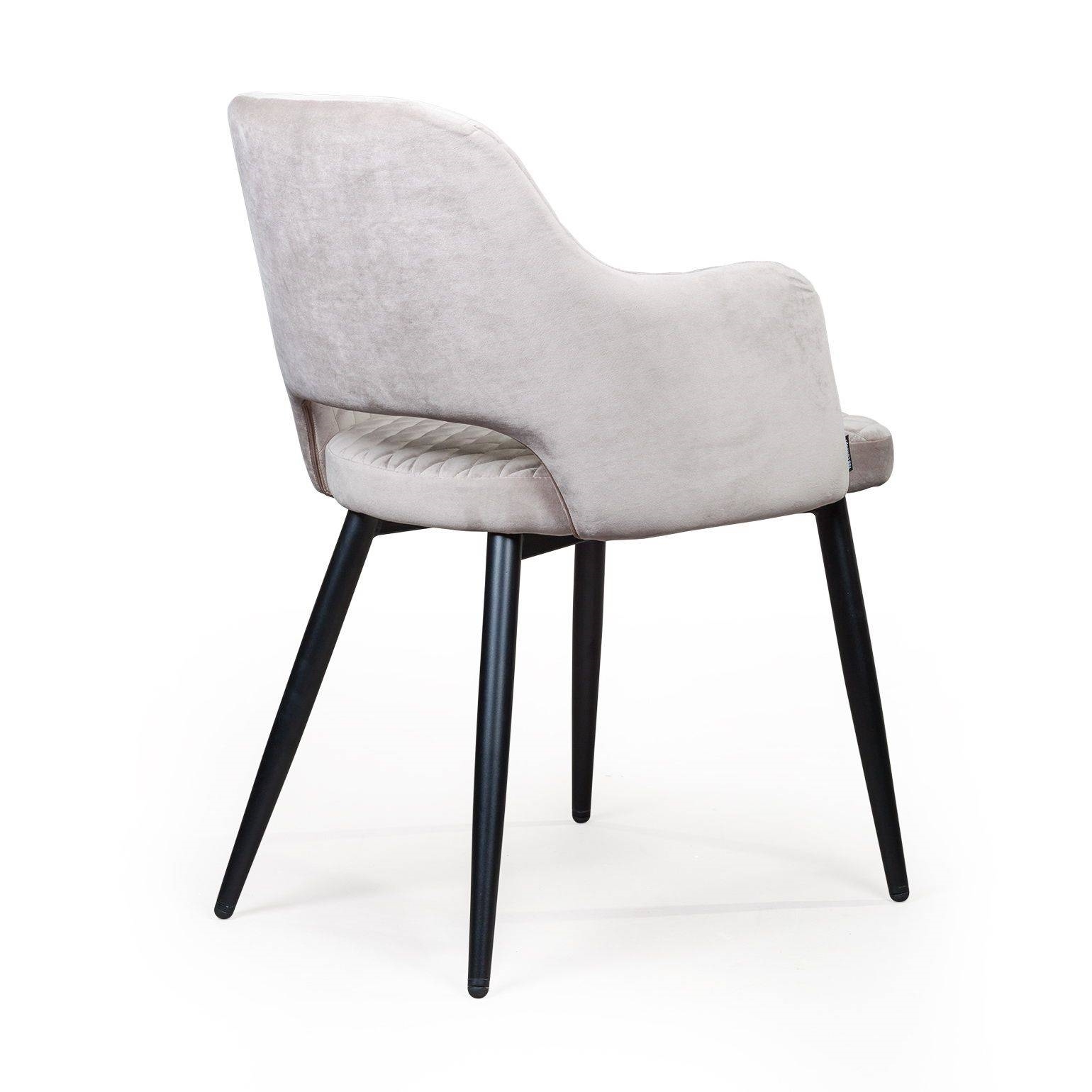 Изюминка стула William – металлические ножки черного матового цвета, излишне скошенные назад, как часть дизайнерской задумки. На ножках предусмотрены специальные пластиковые накладки, которые придают стулу дополнительную устойчивость и защищают пол от царапин.