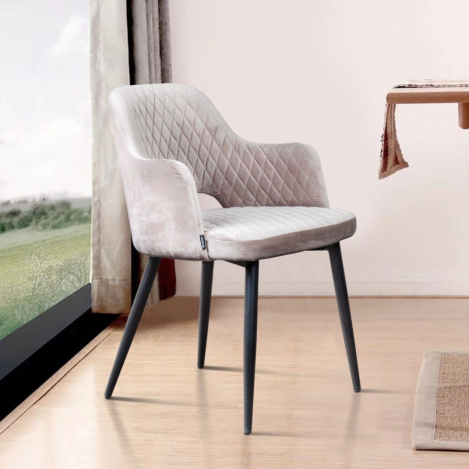 Плавные линии, изящные ножки, просторное сиденье и высокие подлокотники делают модель невероятно удобной для отдыха. Оригинальная прорезь у основания спинки добавляет конструкции легкости и воздушности. Стильная отделка ромбом на спинке и сиденье в сочетании с благородным бархатом создает неповторимые переливы и придает стулу особую утонченность.