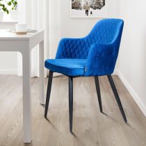 Плавные линии, изящные ножки, просторное сиденье и высокие подлокотники делают модель невероятно удобной для отдыха. Оригинальная прорезь у основания спинки добавляет конструкции легкости и воздушности. Стильная отделка ромбом на спинке и сиденье в сочетании с благородным бархатом создает неповторимые переливы и придает стулу особую утонченность.