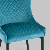 Мягкое прямоугольное сиденье с невысокой спинкой анатомической формы подарит комфорт и уют. В качестве обивки используются прочные износостойкие материалы с декором в виде ромбов. Прямые металлические черные ножки, имеют нестандартную форму в виде перевернутого конуса, поэтому обеспечивают хорошую устойчивость и делают стул оригинальным. Изделие прекрасно смотреться как отдельный предмет мебели, так и в комплекте с обеденным столом.