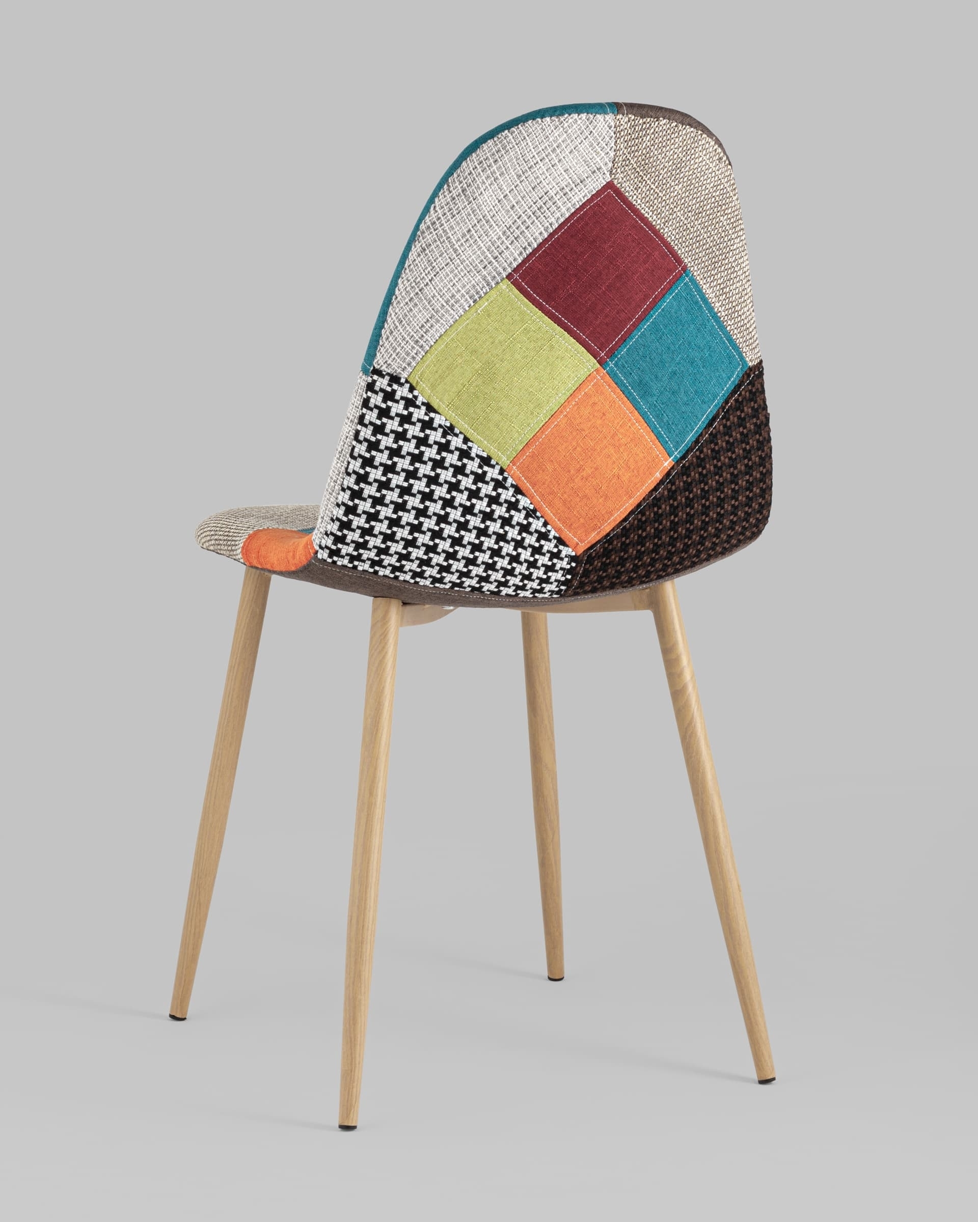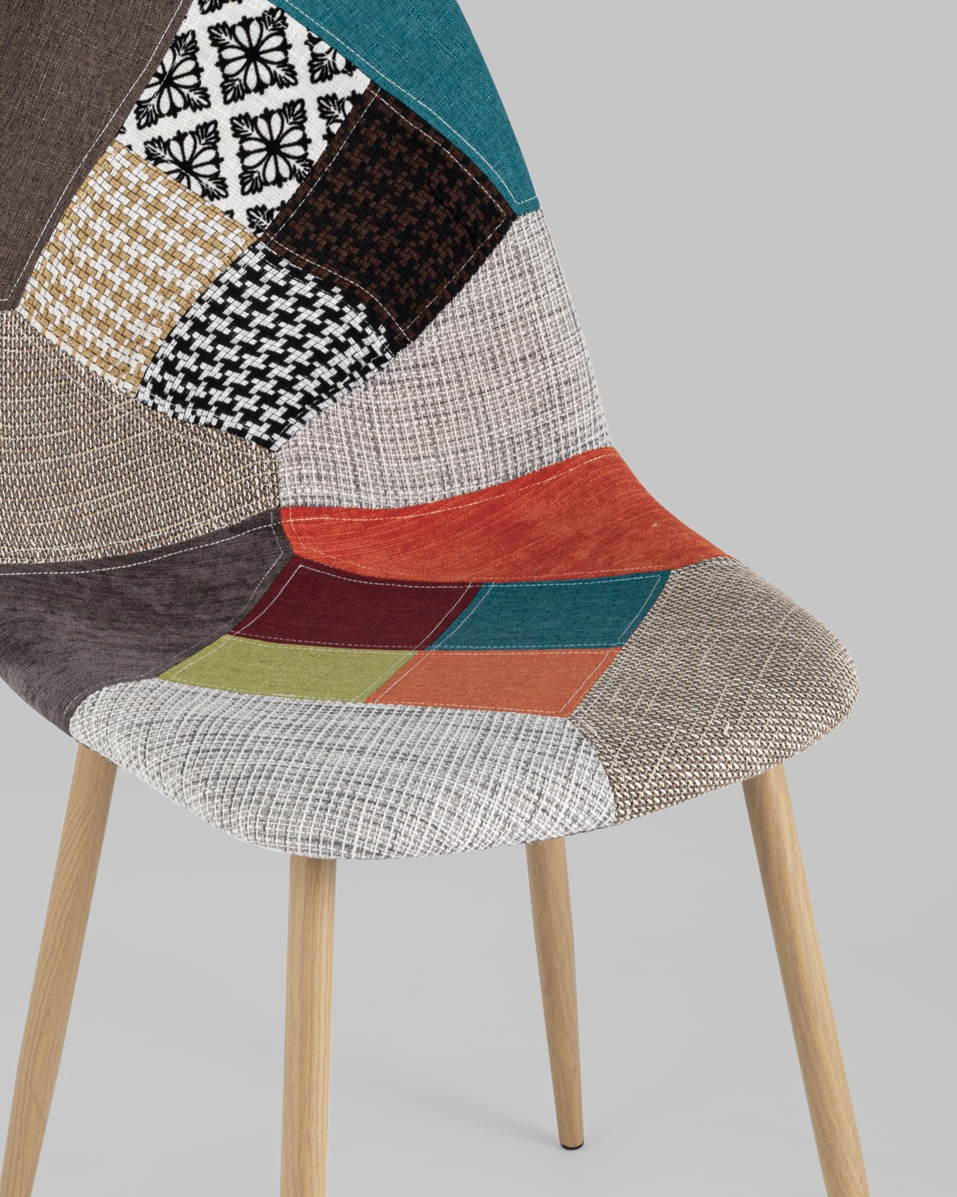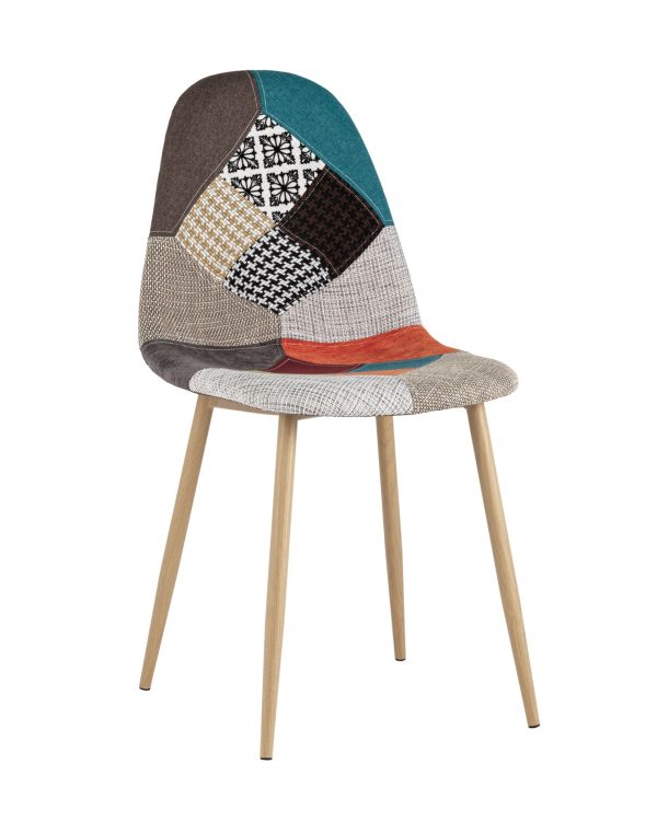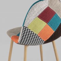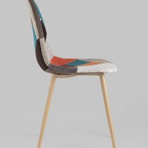 Тканевая обивка обладает хорошей гигроскопичностью, не вызывает раздражения кожи, проста в уходе. Яркий дизайн стула выполнен в стиле пэчворк.