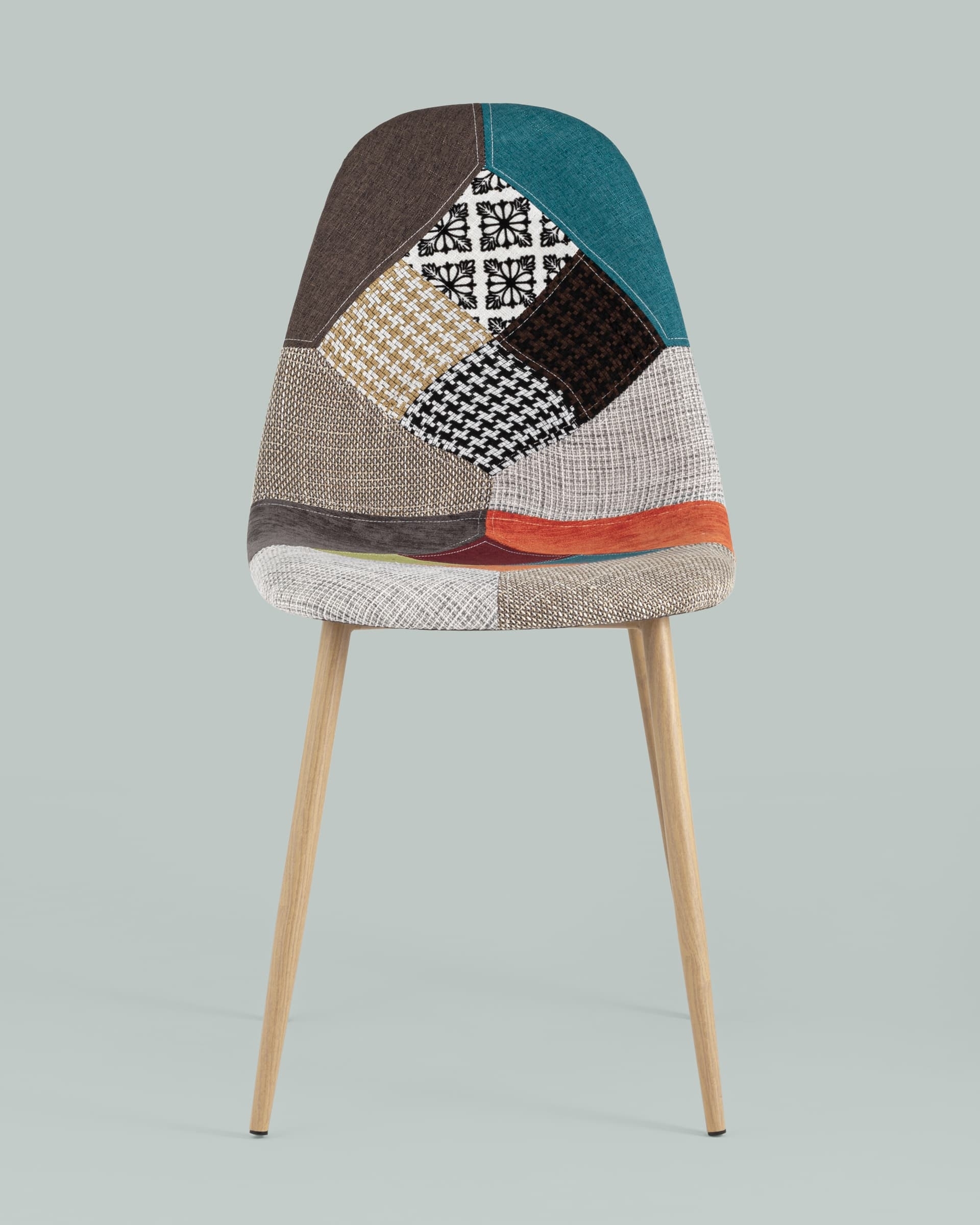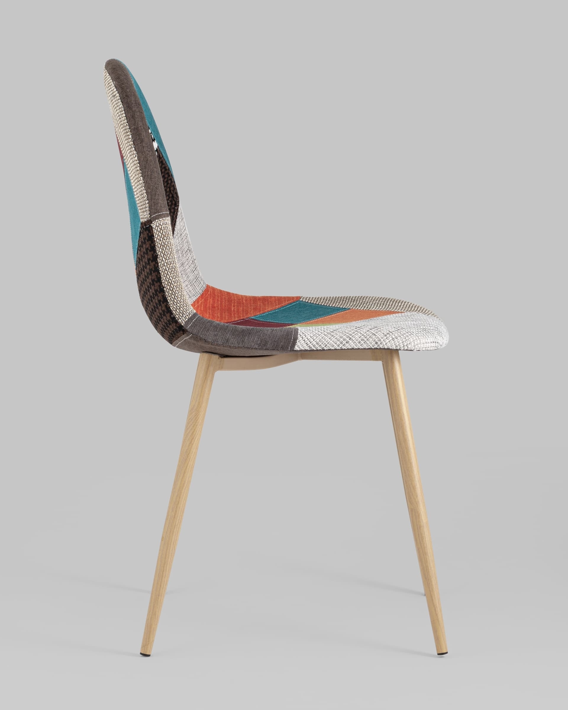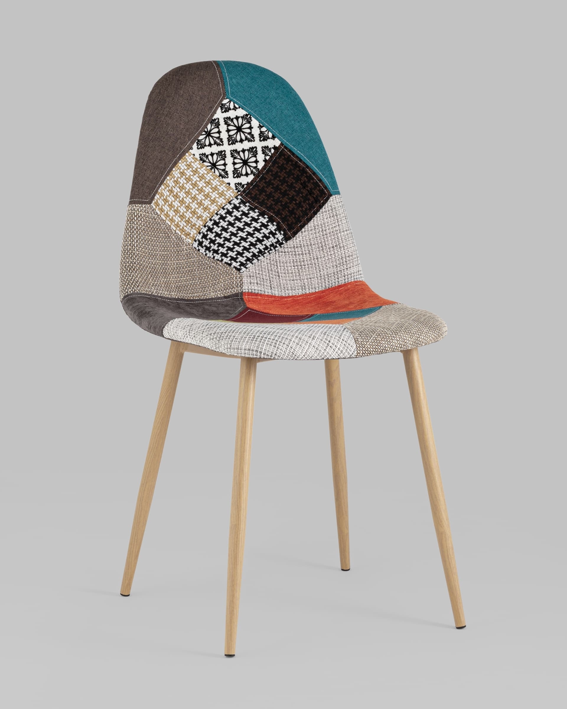 Тканевая обивка обладает хорошей гигроскопичностью, не вызывает раздражения кожи, проста в уходе. Яркий дизайн стула выполнен в стиле пэчворк.