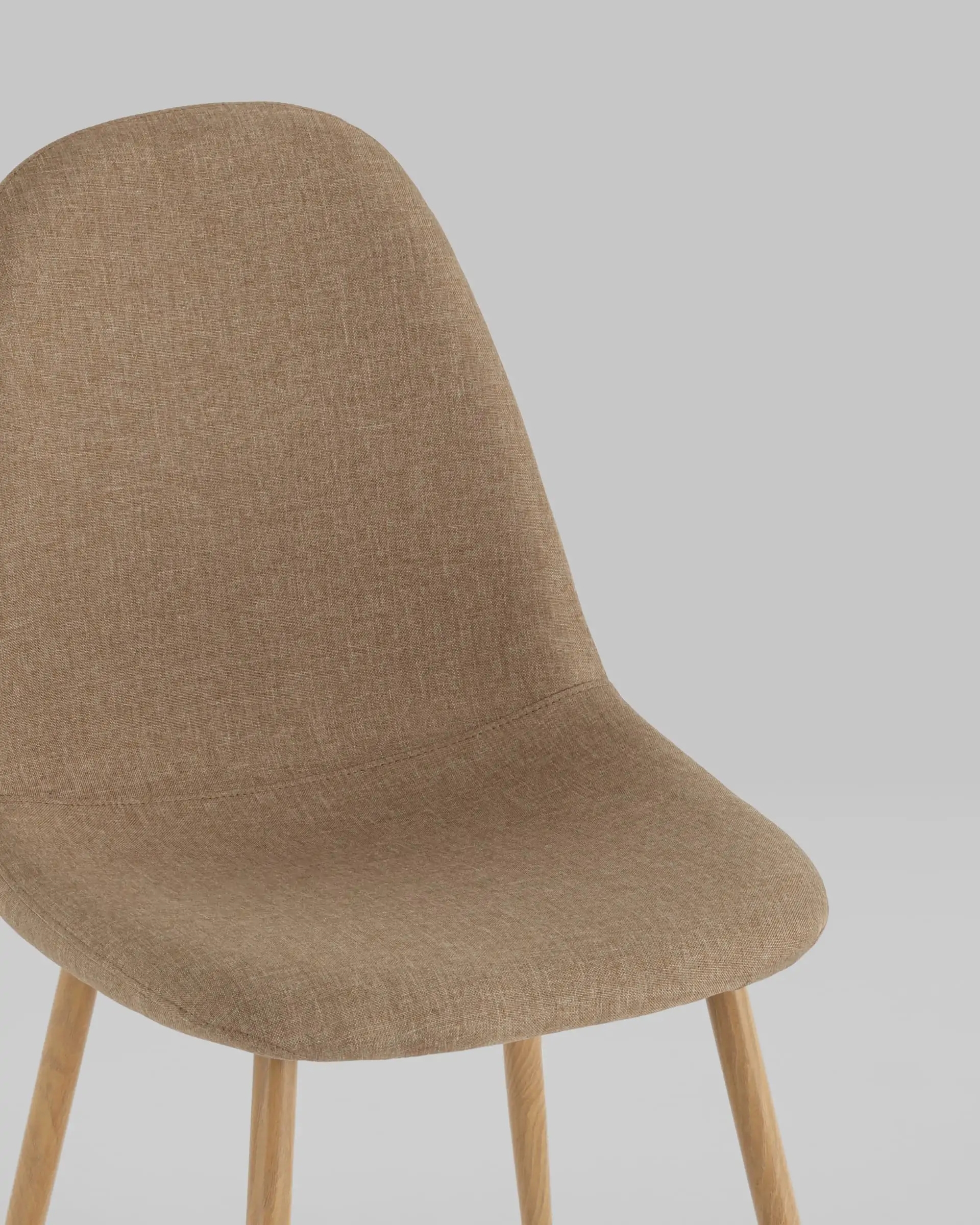Опора и ножки стула выполнены из металла, окрашенного в цвет натурального дерева.