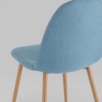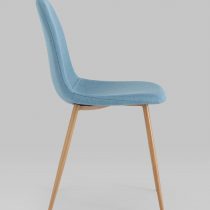 Опора и ножки стула выполнены из металла, окрашенного в цвет натурального дерева.