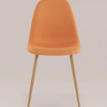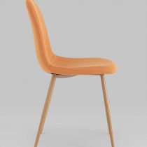 Опора и ножки стула выполнены из металла, окрашенного в цвет натурального дерева.