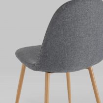 Опора и ножки стула выполнены из металла, окрашенного в цвет натурального дерева.