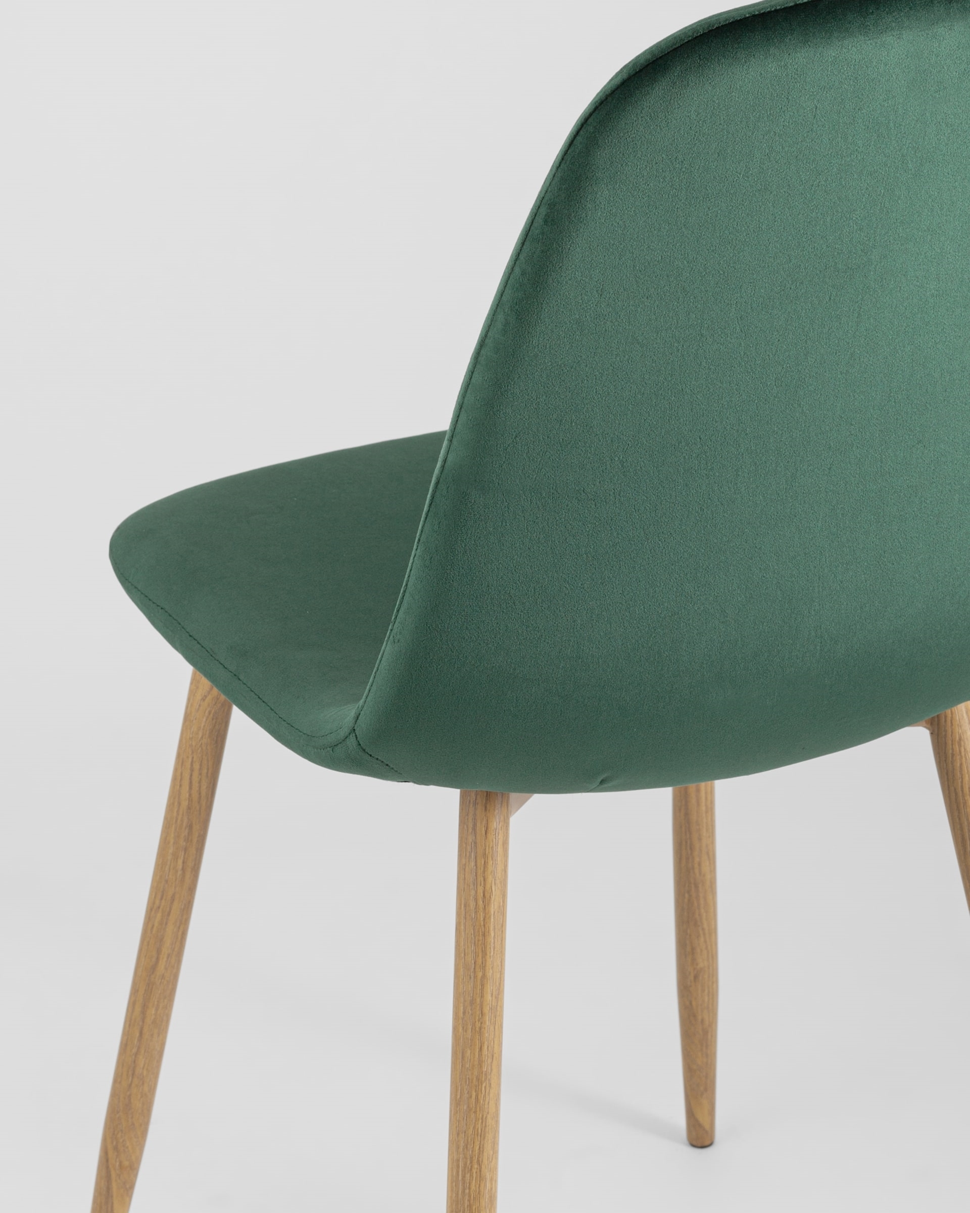 Опора и ножки стула выполнены из прочного металла, окрашенного в цвет натурального дерева.