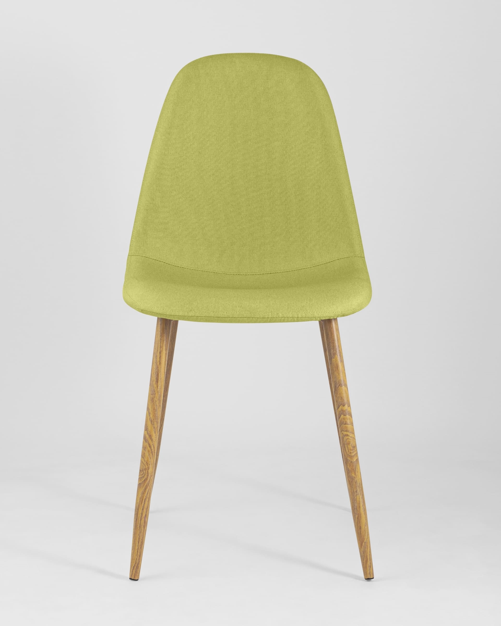 Опора и ножки стула выполнены из металла, окрашенного в цвет натурального дерева.