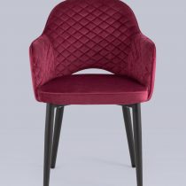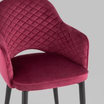 Мягкий стул с округлой спинкой анатомической формы и удобными подлокотниками подарит комфорт и уют. В качестве обивки используется велюр – прочный износостойкий материал. Внутренняя сторона спинки и подлокотников украшена декором в виде ромбов. Высота подлокотников от пола – 64,5 см.