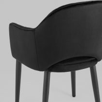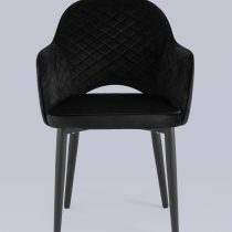 Мягкий стул с округлой спинкой анатомической формы и удобными подлокотниками подарит комфорт и уют. В качестве обивки используется велюр – прочный износостойкий материал. Внутренняя сторона спинки и подлокотников украшена декором в виде ромбов. Высота подлокотников от пола – 64,5 см.