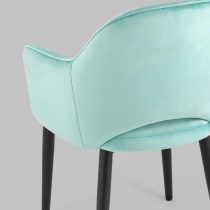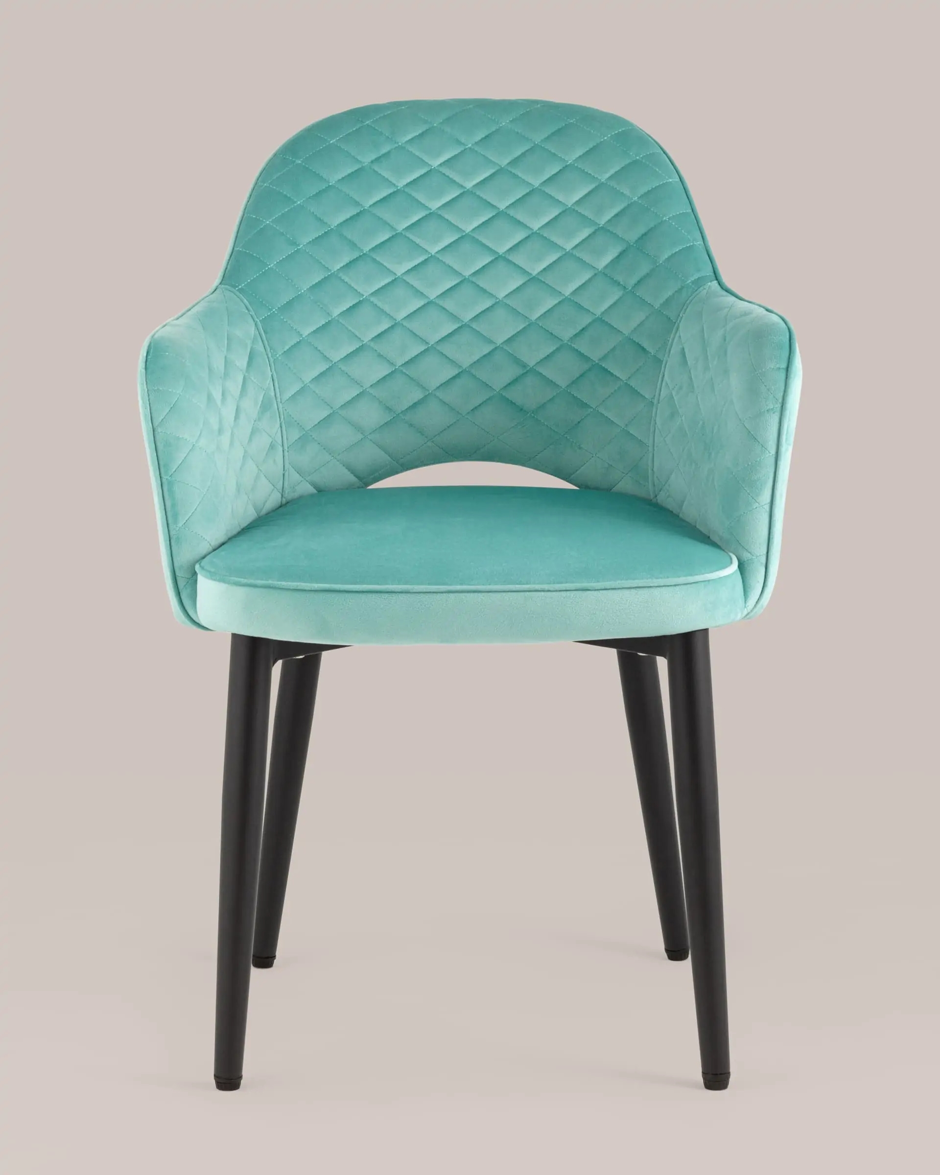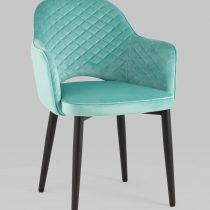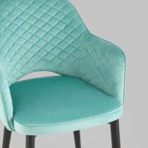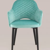 Мягкий стул с округлой спинкой анатомической формы и удобными подлокотниками подарит комфорт и уют. В качестве обивки используется велюр – прочный износостойкий материал. Внутренняя сторона спинки и подлокотников украшена декором в виде ромбов. Высота подлокотников от пола – 64,5 см.