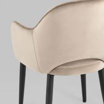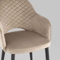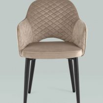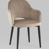 Мягкий стул с округлой спинкой анатомической формы и удобными подлокотниками подарит комфорт и уют. В качестве обивки используется велюр – прочный износостойкий материал. Внутренняя сторона спинки и подлокотников украшена декором в виде ромбов. Высота подлокотников от пола – 64,5 см.
