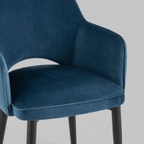 Интересное сочетание современного дизайна и вневременной мебельной классики. Обивка из мебельной велюровой ткани, мягкой, бархатистой и очень приятной на ощупь. Мебельная ткань велюр – очень практичная и устойчивая к истиранию. Ножки: металлические, черного цвета.