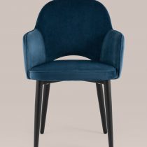 Интересное сочетание современного дизайна и вневременной мебельной классики. Обивка из мебельной велюровой ткани, мягкой, бархатистой и очень приятной на ощупь. Мебельная ткань велюр – очень практичная и устойчивая к истиранию. Ножки: металлические, черного цвета.
