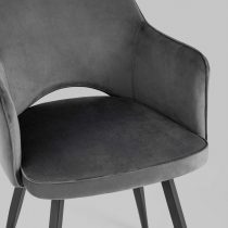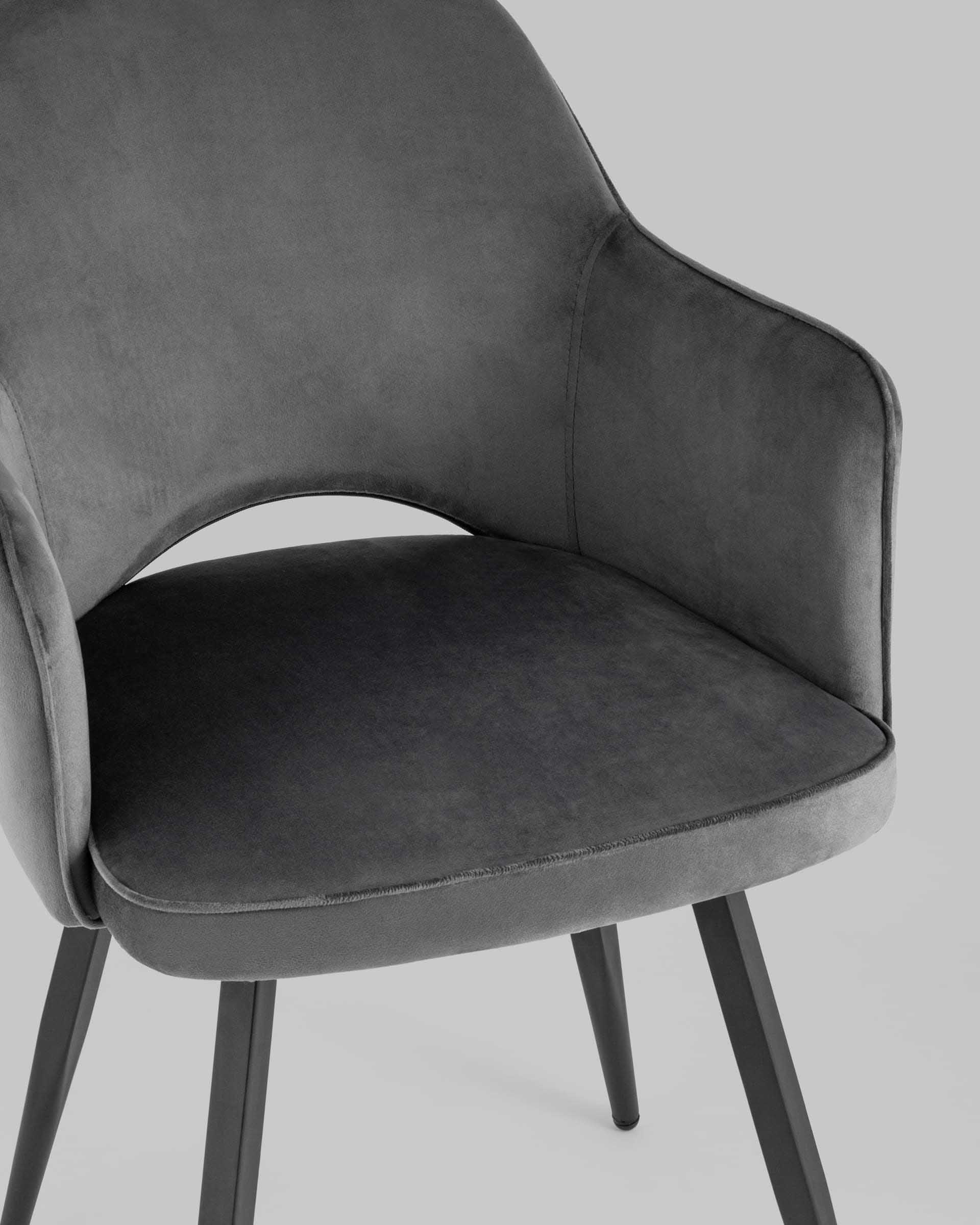 Мягкий стул с округлой спинкой анатомической формы и удобными подлокотниками подарит комфорт и уют. В качестве обивки используется велюр – прочный износостойкий материал.