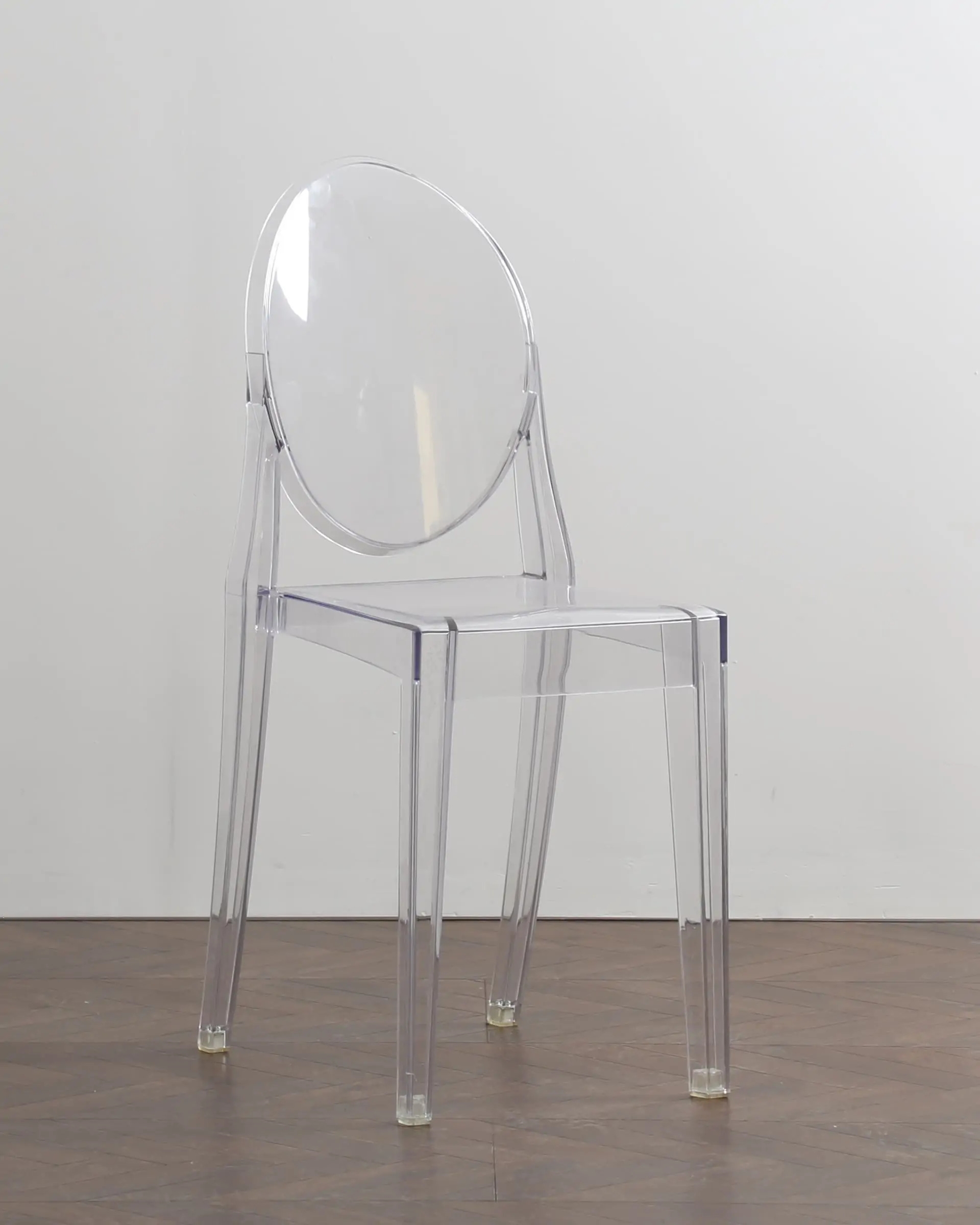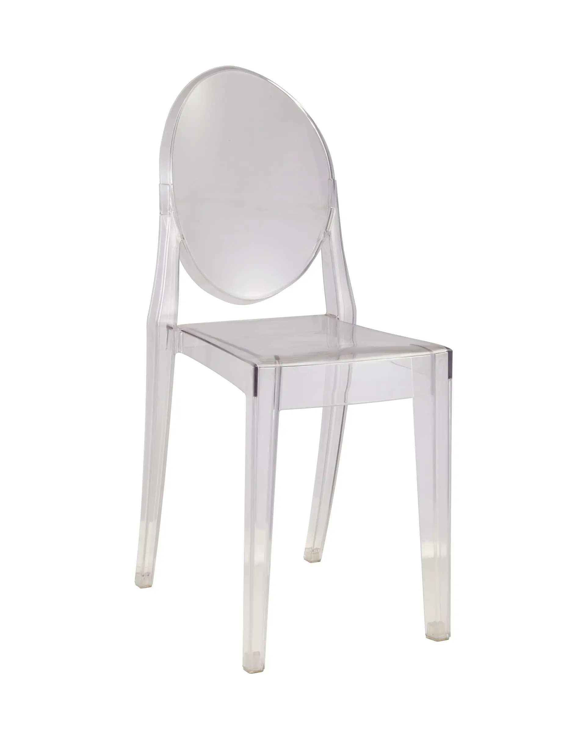 Дизайнерский стул Victoria Ghost изготовлен из поликарбоната. Экологически чистый и долговечный материал обладает хорошей прочностью, термостойкостью и малым весом. Стул Victoria Ghost переживет не одно десятилетие, сохранив свои качества и красоту. Высокая спинка и просторное сиденье обеспечивают комфортную посадку. Современное дизайнерское решение в виде отсутствия цвета позволяет вписать стул в любой интерьер, не перегружая пространство. Несмотря на хрупкий внешний вид, стул Victoria выдерживает нагрузку в 150 кг.