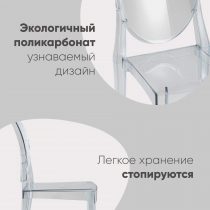 Дизайнерский стул Victoria Ghost изготовлен из поликарбоната. Экологически чистый и долговечный материал обладает хорошей прочностью, термостойкостью и малым весом. Стул Victoria Ghost переживет не одно десятилетие, сохранив свои качества и красоту. Высокая спинка и просторное сиденье обеспечивают комфортную посадку. Современное дизайнерское решение в виде отсутствия цвета позволяет вписать стул в любой интерьер, не перегружая пространство. Несмотря на хрупкий внешний вид, стул Victoria выдерживает нагрузку в 150 кг.