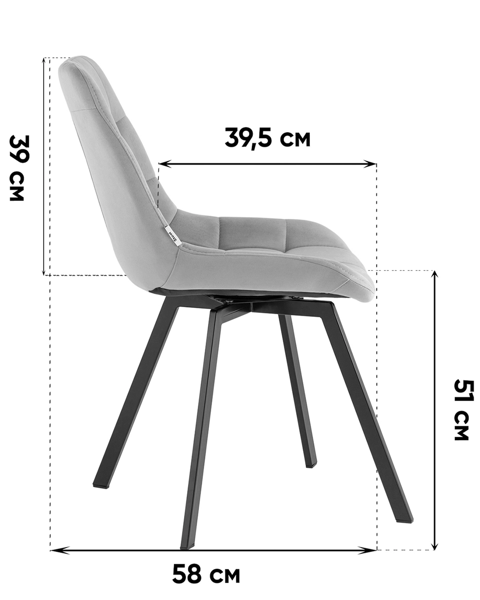 Кухонный стул в мягкой обивке из велюра без подлокотников. Анатомическая форма сиденья обеспечивает удобство, а декоративная стяжка придает объем и защищает от образования вмятин. Металлические ножки с крестовидным каркасом выдерживают значительные нагрузки. Подпятники ножек не испортят напольное покрытие и предохраняют от скольжения. Лаконичный дизайн украсит любой кухонный интерьер. Дополнительная функция вращения сиденья обеспечивает максимальный комфорт.
