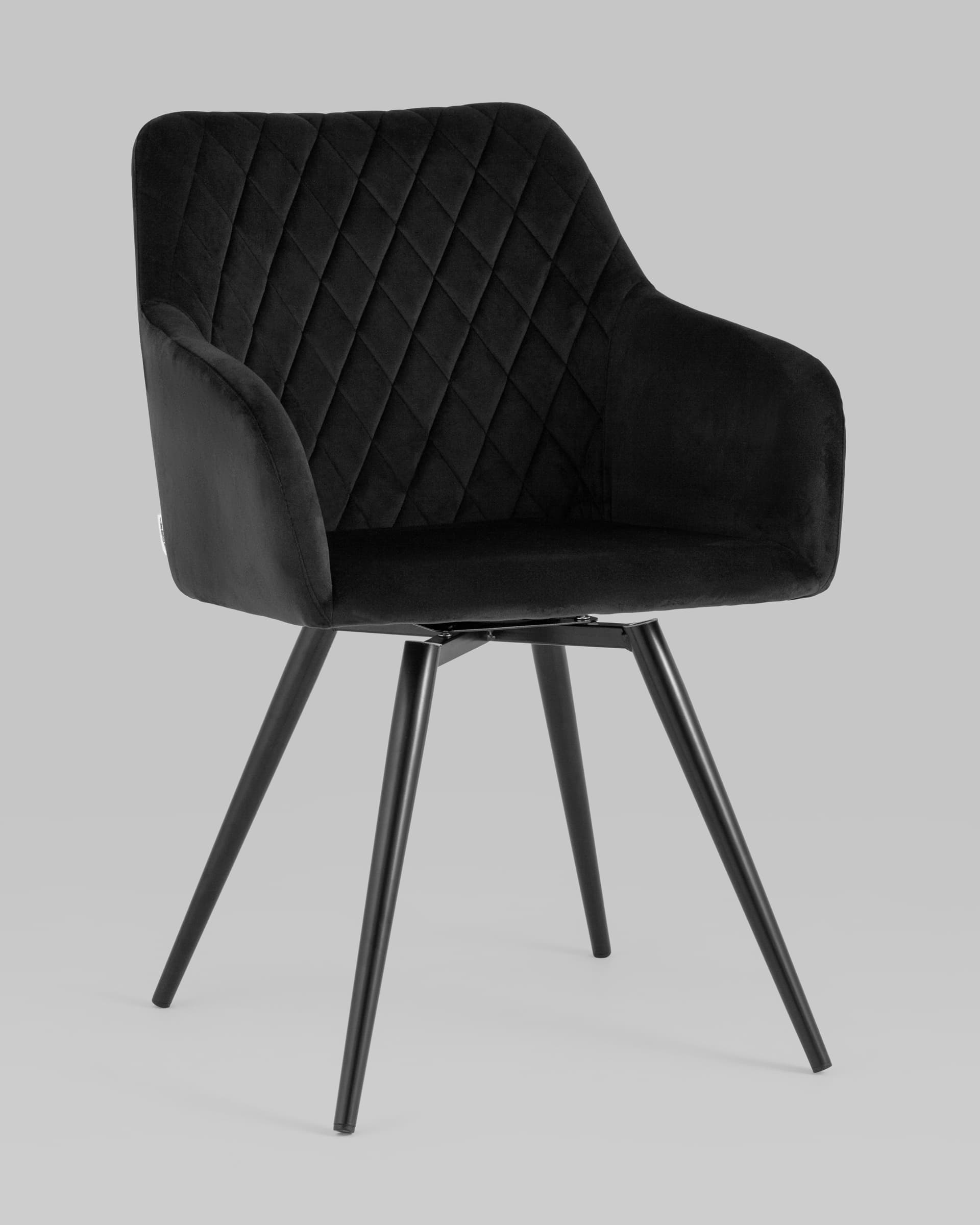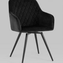 Вращающийся стул Дастин лаконичной формы. Широкая плавная спинка анатомической формы и цельные подлокотники подарят комфорт и уют. В качестве обивки используется велюр – прочный износостойкий, мягкий и простой в уходе материал. Внутренняя сторона спинки дополнена декоративной строчкой в виде ромбов.