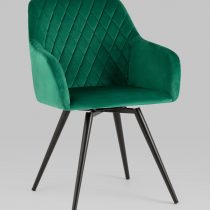 Вращающийся стул Дастин лаконичной формы. Широкая плавная спинка анатомической формы и цельные подлокотники подарят комфорт и уют. В качестве обивки используется велюр – прочный износостойкий, мягкий и простой в уходе материал. Внутренняя сторона спинки дополнена декоративной строчкой в виде ромбов.