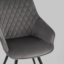 Стильный вращающийся стул Сеул станет прекрасным дополнением кухни, гостиной или рабочего места. Мягкая обивка выполнена из велюра – прочного, износостойкого и легкого в уходе материала. Внутренняя сторона спинки декорирована ромбовидной стежкой. Анатомическая форма сиденья и небольшие подлокотники обеспечивают максимальное удобство и комфорт. Металлические ножки выдерживают значительные нагрузки. Подпятники на ножках не испортят напольное покрытие и предохраняют от скольжения.