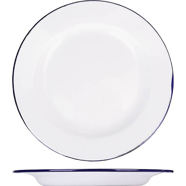 Тарелка мелкая эмалиров.;сталь;D=26см;белый,синий 451/26