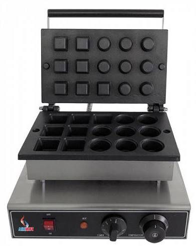Вафельница для тарталеток AirhotWT-15– современное технологическое оборудование, которое применяется для изготовления тарталеток различного формата. Данный продукт отлично впишется в интерьер кухни в различных заведениях общественного питания. Актуальность этого аппарата заключается в том, что на одной поверхности размещены тарталетки 2 видов: 7 квадратных и 8 круглых. Уникальность состоит в том, что разные формы позволяют разнообразить подачу продукта.