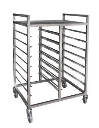 Тележка представляет собой сварную конструкцию со съемными поддонами глубиной 100 мм. Выполнена полностью из нержавеющей стали. Передвижение тележки осуществляется на четырех поворотных колесах, два из которых имеют тормозное устройство. Поставляется в собранном виде.