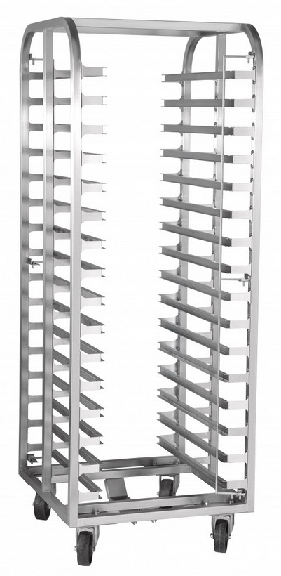 Количество гастроемкостей / противней, устанавливаемых на 1 уровень: 1х600х400 мм или 1хGN 2/1 или 2хGN 1/1. Имеет четыре поворотных колеса, включая два со стопором.
