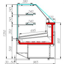 Тепловая витрина Полюс КС95 SH 1,2-1 — новая модель, которая по своему функционалу, дизайну, комплектации отлично подойдёт пиццериям, кафе, кондитерским, кулинарным отделам супермаркетов. Позволяет организовать превосходную демонстрацию и поддержание в горячем состоянии выпечки, пирожков, пиццы, различных готовых блюд. Рабочие температуры данной модели — до +65 °C. Экспозиционная площадь витрины составляет 0,76 м2, а глубина выкладки 695 мм. Нагрев посредством ТЭНов с вентиляцией воздуха. Климатическое исполнение — класс 3. Может стыковаться в торговую линию.