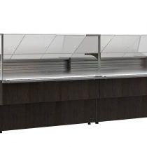- столешница и поверхность экспозиции из нержавеющей шлифованной стали;