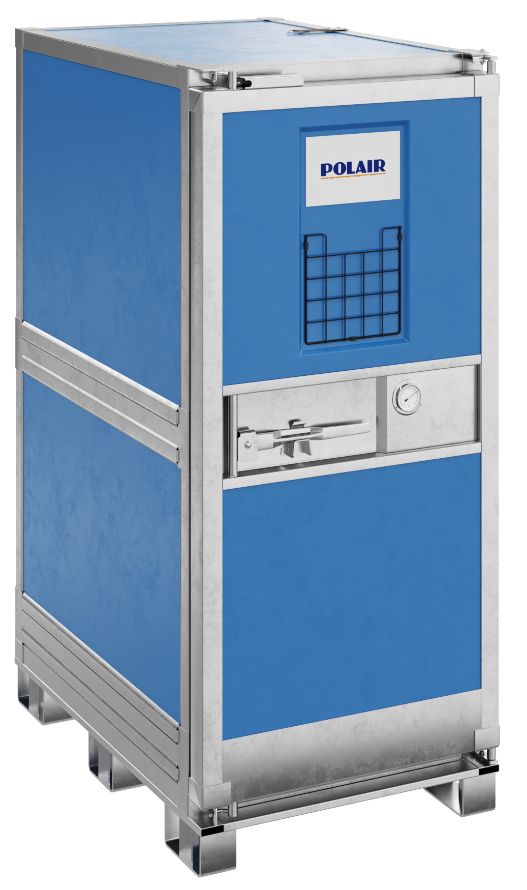 Вы можете загрузить втермоконтейнер Polair CT-1000700 кг продукции, полезный объем составляет 950 л. Модель выполнена с опорами под поддон, что позволяет перемещать контейнер на гидравлической тележке и вилочном погрузчике. Возможно исполнение на колесных опорах и с дверью со встроенными ручками. Спереди расположен карман для хранения сопроводительных документов. Хладоэлементы для направляющих заказываются отдельно.