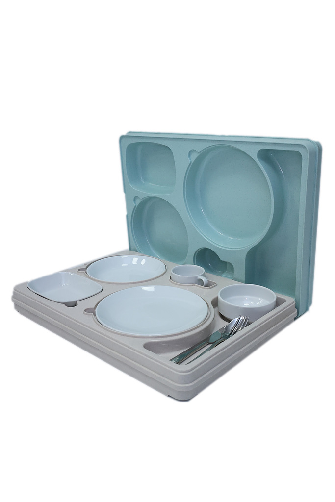 Термоподнос индивидуальный Tribeca 5 секций— предназначен для модернизации питания в медицинских учреждениях и перехода от доставки и раздачи пищи в больших кастрюлях и бидонах к системе, которая получила название таблет-питание. Таблет-питание — индивидуально-порционная система питания на подносе, при которой еда раскладывается индивидуальными порциями в посуду, которую кладут на подносы накрывают крышками и транспортируют с помощью тележки до палаты с пациентами. При этом еда не остывает и сохраняется в безопасных условиях.