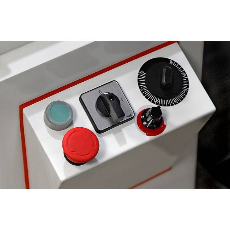 В данном тестомесе верхняя часть (голова) откидная, дежа выдвижная, электромеханическая панель управления с таймером и измерителем скорости. Чаша с защитной решёткой. Устанавливается аппарат напольно, предусмотрены колёсики для его лёгкого перемещения.