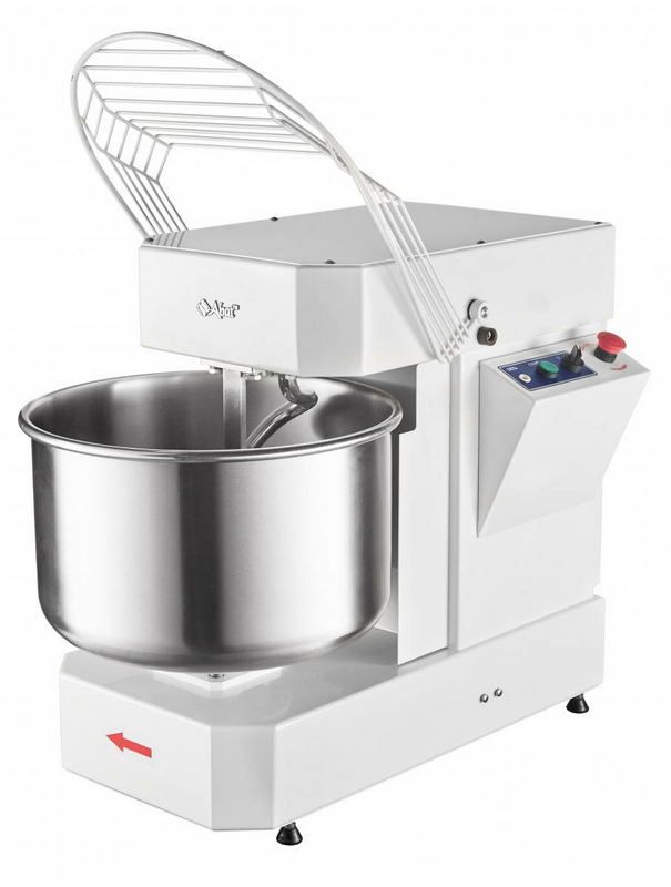 При замешивании вращается не только спираль (со скоростью 120 оборотов в минуту), но и дежа (10 оборотов в минуту). Максимальная загрузка для одного рабочего цикла не должна превышать 6 кг. Управляется аппарат с помощью электромеханической панели.