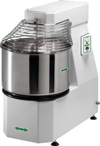 Тестомес спиральный KocateqTF 200 ECOотносится к специальной серии для замеса дрожжевого теста. Оснащён аналоговой панелью управления, имеет 2 скорости работы и таймер для контроля времени замеса. Исполнение — с фиксированной дежой и рабочей частью. Установлен двигатель с защитой от перегрузок и системой блокировки работы тестомеса при поднятой защитной решётке.