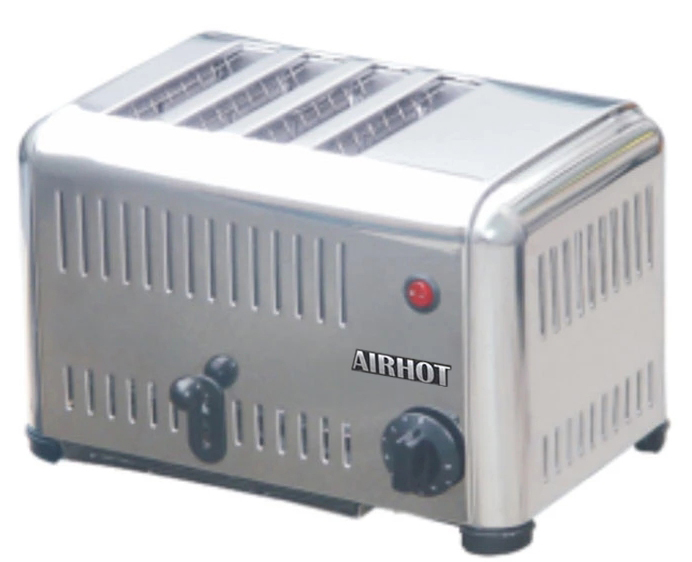 Тостер Airhot VT-4 – профессиональная модель для эксплуатации в интенсивном режиме. Назначение оборудования – поджарка ровно нарезанных ломтей хлеба для сервировки завтрака и закусок: подаются с маслом или джемом, колбасой или соусом. Аппарат рассчитан на длительную работу и собран с использованием высококачественных материалов, соответствует всем требованиям безопасности для пищевого производства.