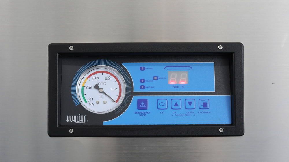 Hualian Machinery HVC-410T/2A-G (нерж., газ)представляет собой однокамерный вакуумный упаковщик настольного типа. Оборудование оснащено системой газонаполнения. Аппарат отлично подходит для оснащения производств, торговых точек, пунктов общественного питания. Корпус и камера изготовлены из нержавеющей стали марки AISI304. В конструкции предусмотрен промышленный насос производительностью 20 куб.м в час. Крышка выполнена из прозрачного оргстекла, что позволяет контролировать процесс упаковки. На корпусе установлена электронная панель управления с возможностью запоминания до 5 программ.