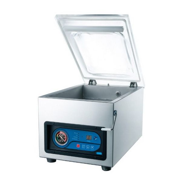 Упаковщик однокамерный PACKVAC VM-300E обрезка— простой и неприхотливый в эксплуатации аппарат. Область применения – упаковка продуктов (как пищевых, так и непищевых) в вакуумные пакеты в небольших цехах и на предприятиях общественного питания. Удобная конструкция камеры и нагревательных элементов облегчает процесс очистки и санитарной обработки. Простота настройки вакуумирования и запайки; светодиодная индикация при работе с вакуумным упаковщиком.