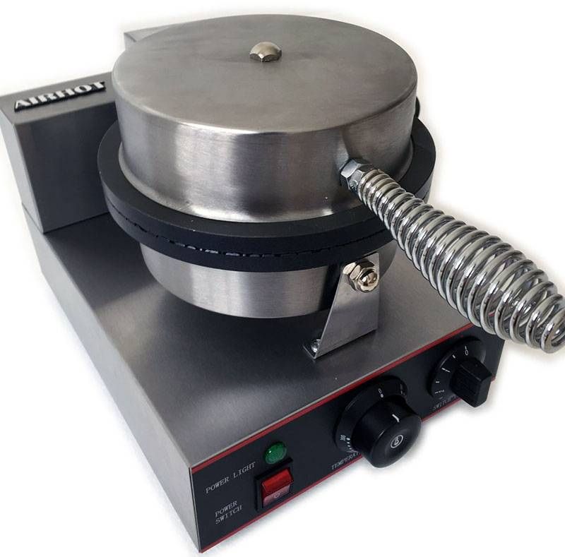 Вафельница AirhotWE-1S– компактное устройство для приготовления тонких вафель и сооружения рожка, который можно наполнять разнообразной начинкой: мороженым, фруктами и ягодами, кремом или сиропом. Может эксплуатироваться в заведениях питания различного типа: в кондитерских и кофейнях, ресторанах и кафе.