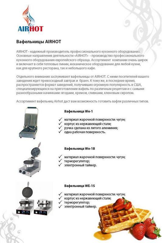 Вафельница AIRHOT WE-1S купить с гарантией в Москве по низкой цене с доставкой по России у официального дилера. Возможность покупки в кредит