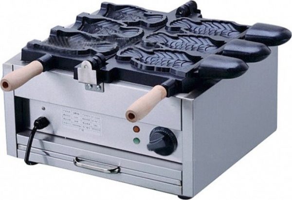 - за цикл выпекает 3 вафли в форме рыбки с открытым ртом;