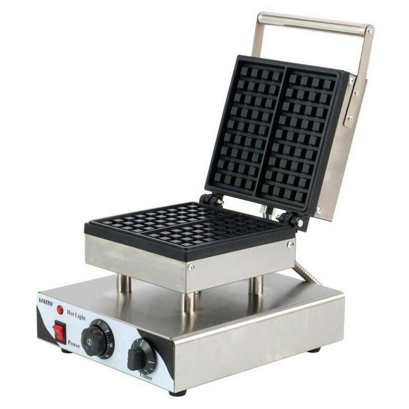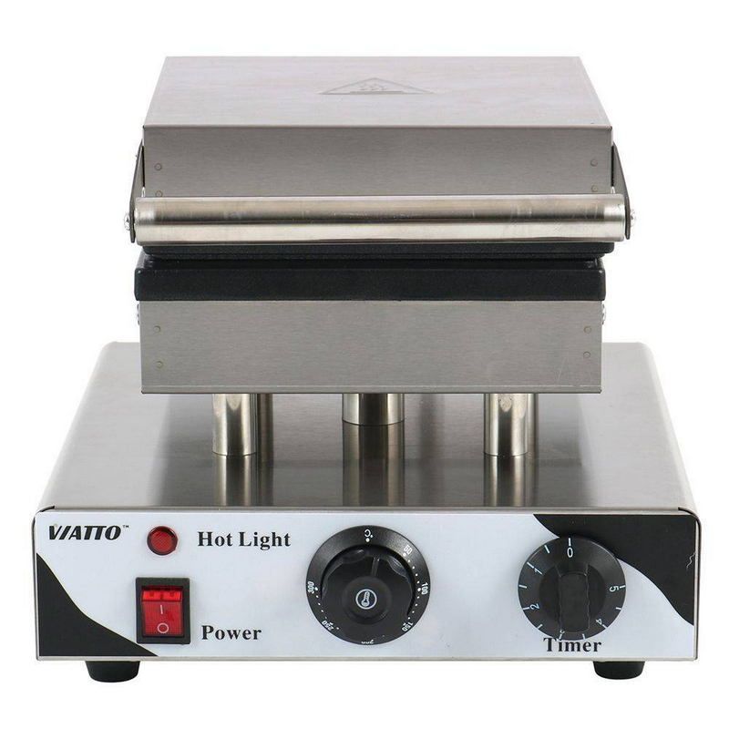 Viatto VA-WB3представляет собой вафельницу профессионального класса. Аппарат предназначен для приготовления бельгийских вафель. Модель отличается повышенной функциональностью и прочностью. На корпусе установлен терморегулятор, позволяющий задать нагрев рабочей поверхности в диапазоне от 50 до 300 градусов. Дополнительно в устройстве присутствует таймер до 5 минут. Вафельница подходит для использования в торговых точках, кафе, фуд-кортах и так далее. Жарочная поверхность прямоугольной формы выполнена из чугуна с антипригарной поверхностью. Корпус произведен из нержавеющей стали.