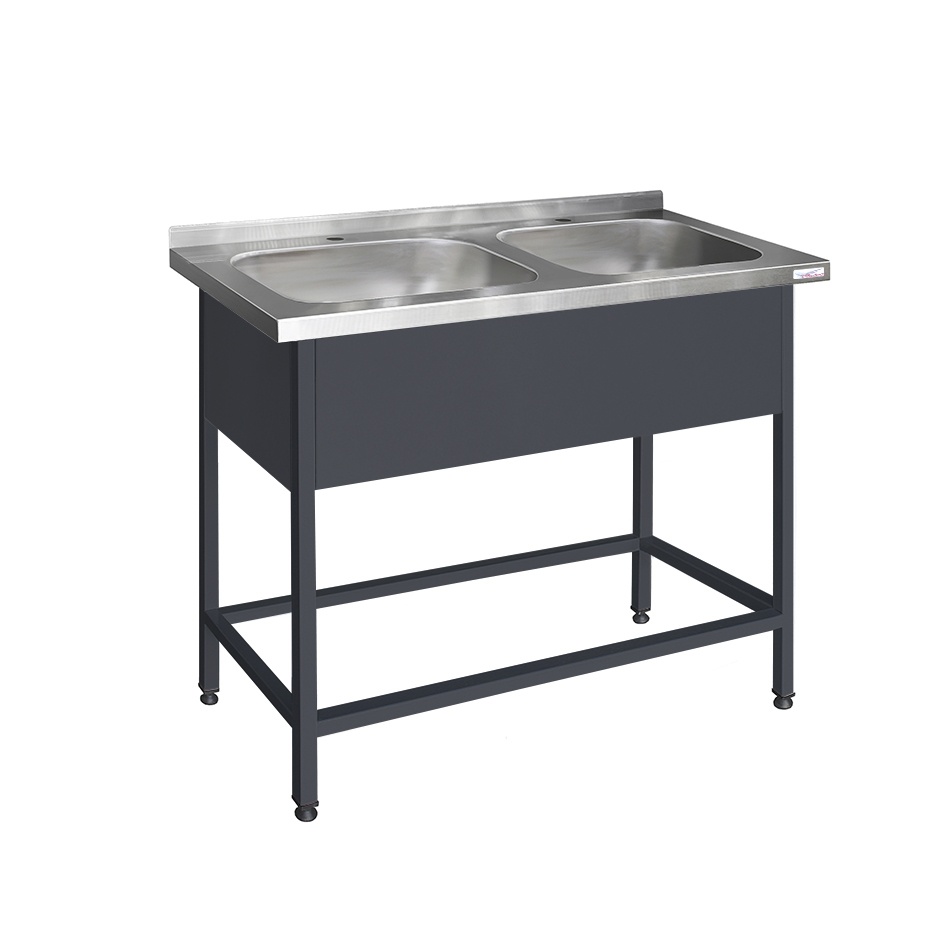 Ванна моечная двухсекционная Финист ВМЭц-2 (1200х500х850)изготавливается на сварном каркасе. Сварная труба и фартук с 3-х сторон выполнены из стали с полимерно-порошковым покрытием. Оснащены регулируемыми по высоте опорами для компенсации неровностей пола.
