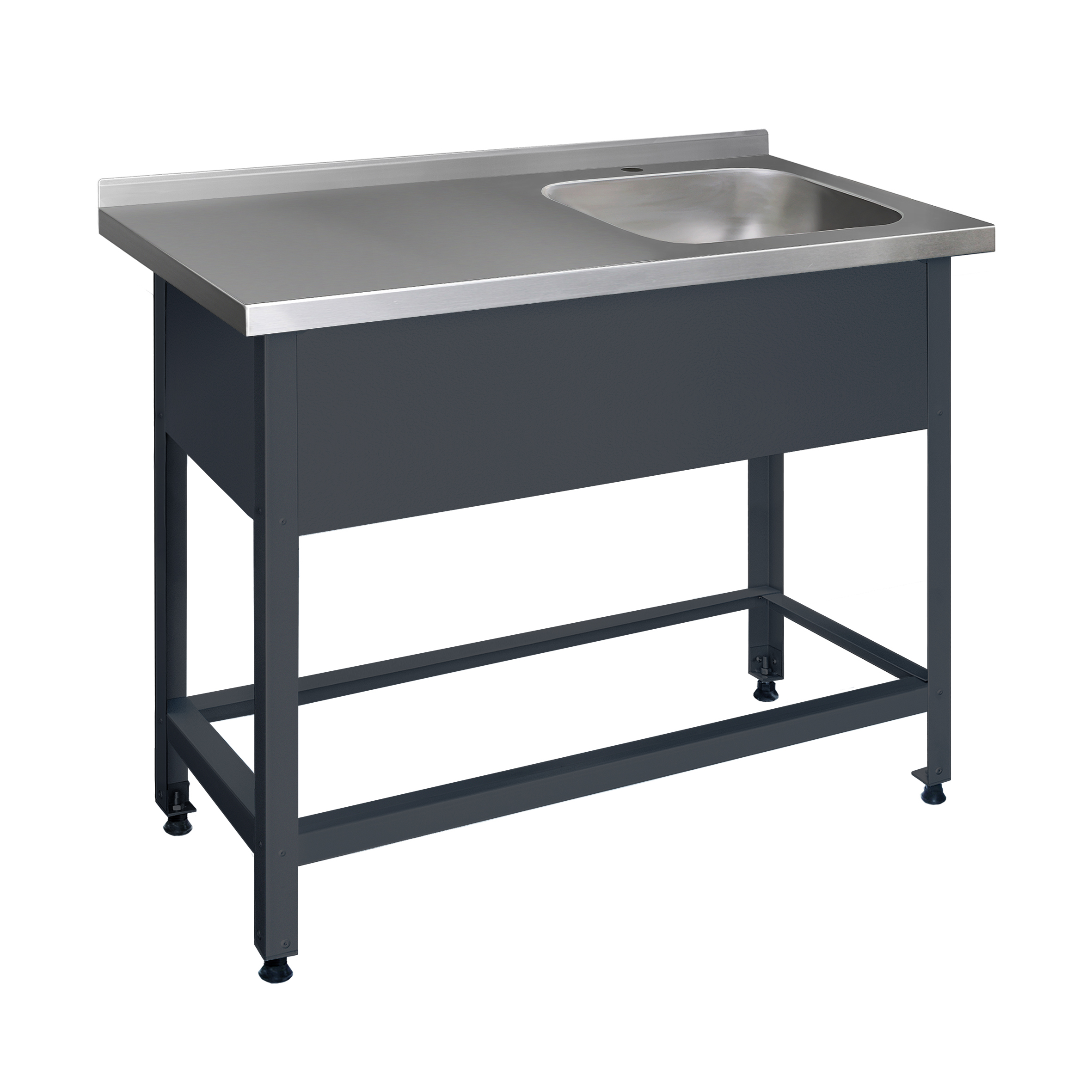 Ванна моечная со столом Финист ВМБсц-1 (1200х600х850) – каркас на уголке. Материал каркаса и фартука с 3-х сторон — сталь с полимерно-порошковым покрытием. Оснащена регулируемыми по высоте опорами для компенсации неровностей пола.