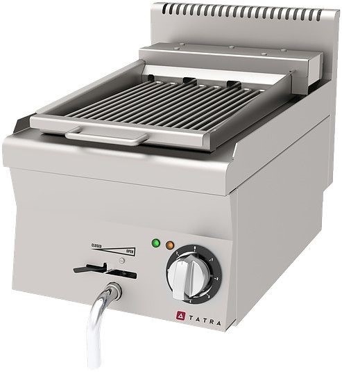 Tatra TWG 2735 представляет собой настольный вапо-гриль. Аппарат предназначен для использования в заведениях общественного питания, торговых точек. Он используется для жарки мяса, рыбы, птицы, овощей, а также разогрева полуфабрикатов. В конструкции предусмотрена 1 рабочая поверхность в виде решетки из нержавеющей стали. Гриль оснащен 7 уровнями мощности. Под решеткой находится емкость для воды, заливается она вручную.