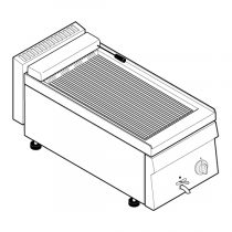 Нагрев рабочей поверхности осуществляется с помощью наклонных электро-ТЭНов, установленных под решеткой из нержавеющей стали. ТЭНы имеют предохранительную систему, блокирующую их работу в поднятом положении. Решетка легко снимается для удобной чистки и техобслуживания оборудования.